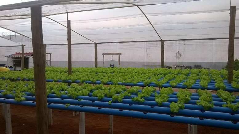 A horta é na modalidade hidropônica e nela trabalham quatro reeducandos