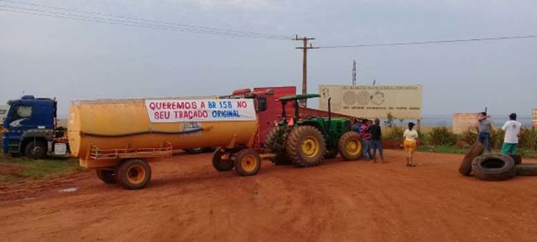 Manifestantes contrários à mudança do traçado da BR-158 rodovia desviando da área indígena Marãwatsédé passando por Bom Jesus do Araguaia, Nova Serra Dourada e Alto Boa Vista, trancaram a rodovia em Planalto do Araguaia (Posto do Arnô) nesta manhã de sexta-feira 27 de outubro de 2017.