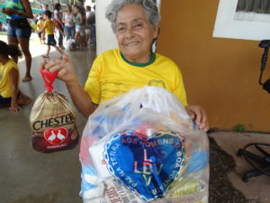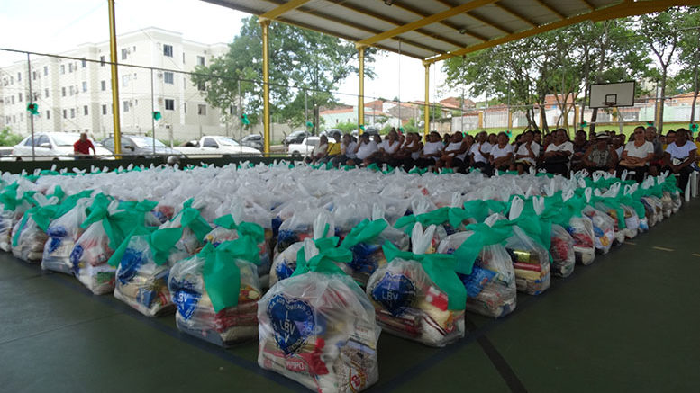 Cada família recebeu uma cesta contendo arroz, feijão, óleo, açúcar, leite em pó, macarrão, farinha de mandioca, massa para bolo, gelatina, fubá, farinha de trigo, extrato de tomate e sal. Com esta ação a LBV garante um Natal mais digno e feliz para mais de mil famílias no Estado do Mato Grosso.