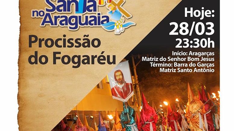 A Procissão do Fogaréu, um dos rituais da programação da Semana Santa católica, ocorre na noite de hoje (28) e a organização está convidando 10 pessoas para comporem a encenação da busca por Jesus Cristo. O único requisito é que o candidato esteja em boas condições físicas para dar conta da caminhada que inicia em Aragarças e termina em Barra do Garças. O evento prevê passagem por Pontal do Araguaia, onde ocorre a última ceia do Salvador da Igreja Católica.