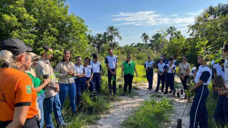 A segunda grande ação ambiental e educativa realizada nas últimas semanas ocorreu em uma área degradada pelo garimpo com o apoio da Secretaria Municipal de Educação através da participação dos estudantes e professores/monitores do 9º Ano do Ensino Fundamental do ECIM CMEF Prof. José Nogueira de Moraes, OSCIP Amigos dos Animais e do Instituto Espinhaço responsável pela operacionalização do Programa Juntos pelo Araguaia.
