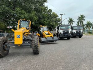 Foram adquiridos dois caminhões basculantes, uma retroescavadeira e uma pá carregadeira