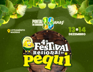 Começa amanhã (13) a quarta edição do Festival Regional do Pequi, em Pontal do Araguaia. A festa faz parte das comemorações do aniversário do 33º município e contará com shows nacionais, competições e o primeiro “panelaço” de arroz carreteiro com pequi.