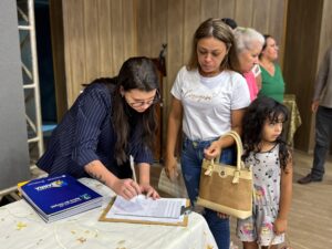 “Nós já recebemos notificação judicial que teríamos invadido a quadra. Em 2023, recebemos uma notificação de despejo. Foi muito triste! Mas, graças a Deus, com muito empenho, o prefeito dr. Adilson e toda a sua equipe regularizaram os nossos imóveis e hoje eu estou recebendo a minha escritura. Estou muito feliz, agora ninguém me tira de lá”, contou Clesia Sales.