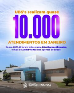 As Unidades Básicas de Saúde de Barra do Garças realizaram quase 10 mil atendimentos médicos apenas em janeiro de 2025. Além dos atendimentos, foram 2,5 mil vacinas aplicadas e milhares de procedimentos diversos realizados dentro das unidades.