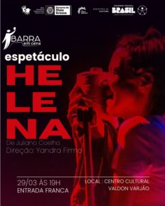O espetáculo Helena faz parte de uma série de produções performáticas protagonizadas por artistas reconhecidos em todo o estado de Mato Grosso. As apresentações integram o projeto Barra em Cena – Incursão na Cidade, uma iniciativa que promoverá a ocupação do Centro Cultural Valdon Varjão por quatro meses, articulando artistas de diferentes regiões do estado.