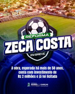 Com emenda parlamentar destinada pelo senador Jayme Campos, de aproximadamente R$1,5 milhões, e mais cerca de R$ 300 mil em recursos próprios do município, a reforma do Zeca Costa inclui a recuperação completa das arquibancadas, a construção de novos vestiários, calçadas, do centro administrativo da Liga Esportiva, a modernização da iluminação e a recuperação total dos sistemas elétrico e hidráulico, além de adequações para receber Pessoas com Deficiência (PcD’s).