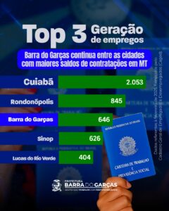 O saldo de contratações em Barra do Garças continua apresentando bons resultados e ocupou o 3º lugar no mês de fevereiro, entre os municípios de Mato Grosso que mais registraram ocupações de emprego. Em janeiro, Barra foi a segunda colocada e o resultado do mês seguinte pode apontar uma tendência de crescimento econômico da cidade.