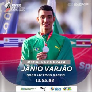 O atletismo brasileiro tem uma nova estrela em ascensão. Jânio Varjão, atleta da Barra do Garças Associação de Atletismo (MT), conquistou neste domingo (27/04) a medalha de prata na prova dos 5.000 metros no Campeonato Sul-Americano Adulto de Atletismo, realizado em Mar del Plata, na Argentina. Com o tempo de 13:55.88, novo recorde pessoal, ele se torna o primeiro atleta mato-grossense da história a correr a distância abaixo dos 14 minutos – uma marca simbólica no cenário das corridas de fundo.
