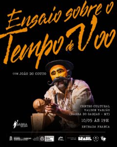 Espetáculo: Tempo de Voo Data: 10 de maio (sábado) Horário: 19h Local: Centro Cultural Valdon Varjão (Porto do Baé) Entrada: Gratuita