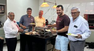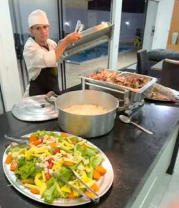 O jantar aconteceu na casa do Chicão em Pontal do Araguaia, tendo como cardápio entrada de Frios, Churrasco daquele que fez até vegetariano repensar a vida. Peixe assado e recheado – mais recheado que pastel de feira. Bebidas: Heineken & Original, Coca-Cola, Água mineral (com e sem gás, pra agradar gregos e troianos) e contando ainda com a tradicional Cachaça da “barriquinha” do paneleiro Valdecir Ferrari.
