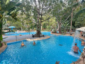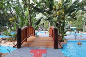 Entre as ações realizadas, destacam-se a reforma da entrada principal, modernização dos banheiros e vestiários, revitalização do paisagismo, recuperação das pontes de madeira e adequações para acessibilidade. As piscinas já foram pintadas com tinta epóxi, que garante maior durabilidade, e os toboáguas também receberão esse mesmo revestimento.