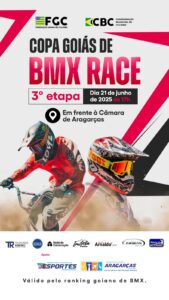 A cidade de Aragarças será o palco da 3ª etapa da Copa Goiás de BMX Race, no próximo sábado, dia 21 de junho, a partir das 17h, em frente à Câmara Municipal. O evento, que integra o ranking goiano da modalidade, conta com total apoio da Prefeitura de Aragarças, por meio do prefeito Ricardo Galvão.