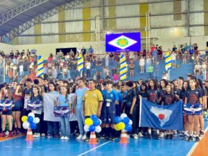No último sábado (28), o Ginásio Arnaldo Martins, em Barra do Garças, foi palco da cerimônia oficial de abertura dos Jogos Estudantis e Escolares 2025 (etapa regional), a maior competição estudantil do estado. O evento reuniu diversas autoridades, além dos mais de 1.200 atletas que integram a competição, que segue até o dia 4 de julho. As disputas acontecerão nos ginásios Arnaldo Martins e Antônio Flandeiro, no IFMT e nas escolas João Alves e Arlinda Gomes.