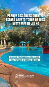 Com o intuito de garantir que visitantes e moradores possam ter férias inesquecíveis e aproveitar um dos principais atrativos de Barra do Garças, o Parque Municipal das Águas Quentes estará de portas abertas todos os dias do mês de julho, incluindo às segundas-feiras. Neste mês, em especial, o Parque não fechará para manutenção.