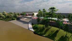 Às margens do Rio Garças, o espaço receberá toda uma estrutura de lazer e paisagismo, com pista de caminhada, ciclofaixa, mirantes, rampas náuticas, quiosques e quadra esportiva.