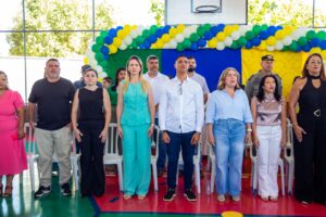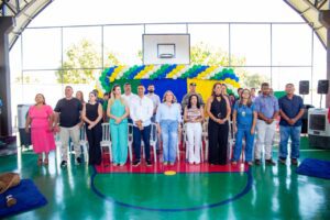 A comunidade escolar de Aragarças viveu um momento especial nesta última sexta-feira (22/08) com a entrega da reforma, ampliação e da nova quadra poliesportiva da Escola Estadual Luiz Dias Paes Leme. A solenidade contou com a presença da secretária estadual de Educação, professora Fátima Gavioli, do prefeito Ricardo Galvão, do vice-prefeito Diogo Rezende, da primeira-dama Raqueline Galvão, da secretária municipal de Educação Juscilene Dias Amorim, da coordenadora regional de Educação de Piranhas Solange Duarte e do assessor da SEDUC, Lucca Perdigão.