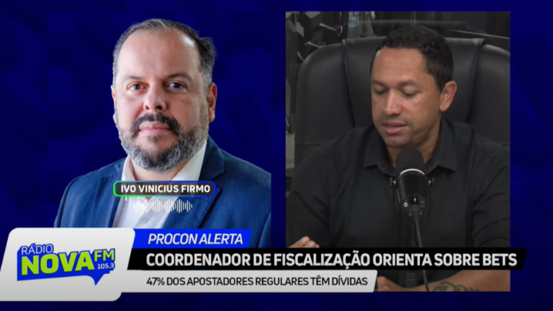 A entrevista completa do coordenador de Fiscalização do Procon, Ivo Vinicius Firmo, com orientações e informações sobre como agir em casos de publicidade enganosa quando o assunto são as bets, está disponível no youtube da Rádio Nova 105.3 FM. Clique aqui para assistir.