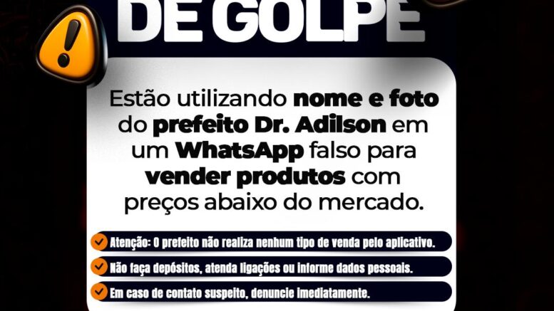 Golpistas estão utilizando a imagem do gestor municipal para tentar aplicar golpes através do aplicativo