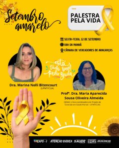 A campanha Setembro Amarelo, dedicada à conscientização e prevenção ao suicídio, contará com duas importantes ações em Aragarças nos próximos dias. A iniciativa é da Secretaria Municipal de Saúde, Coordenação de Atenção Básica e do CAPS I, com apoio do Governo Municipal.