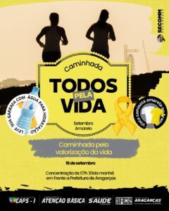 Já no dia 16 de setembro, a programação segue com a Caminhada Todos pela Vida, que reforça a mensagem de valorização da vida e cuidado coletivo. A concentração será às 7h30 da manhã, em frente ao Paço Municipal. A organização pede que os participantes levem garrafinha de água para hidratação e vistam camiseta amarela ou branca, em apoio à causa.