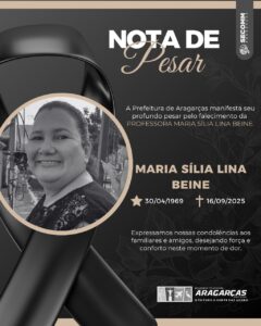 A Prefeitura Municipal de Aragarças manifesta seu profundo pesar pelo falecimento da professora Maria Sília,.