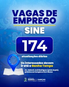 As vagas de emprego ofertadas pelo Sine são atualizadas diariamente e podem ser consultadas no site oficial da Prefeitura de Barra do Garças.