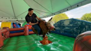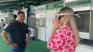 O local se transformou em um grande parque de atividades com brinquedos, jogos educativos, touro mecânico, oficinas, cursos rápidos e experiências tecnológicas, como os óculos de realidade virtual que encantaram quem visitou o estande da Escola do Futuro.