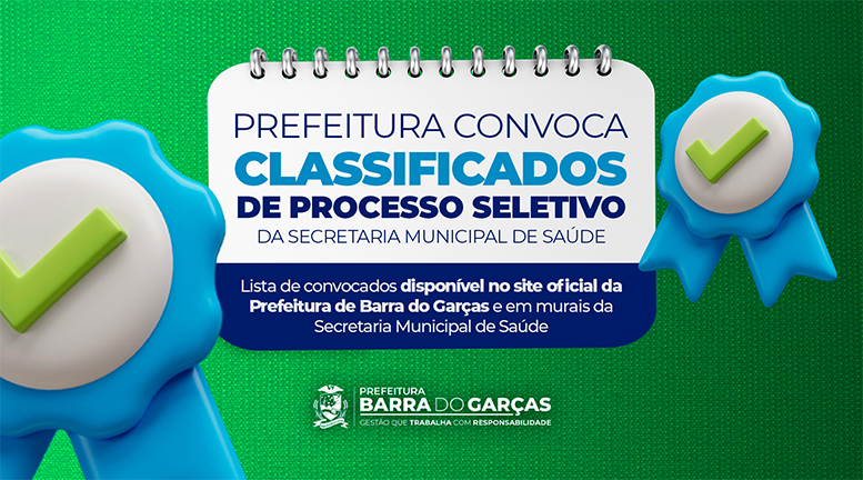 A Prefeitura de Barra do Garças, por meio da Secretaria Municipal de Saúde, divulgou a 4ª e última convocação dos candidatos aprovados no processo seletivo para preenchimento de vagas emergenciais. Veja a lista no link abaixo.