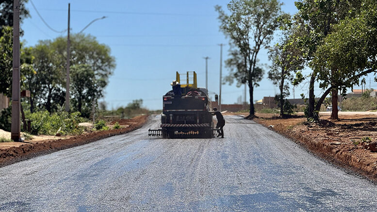 Obras avançam com imprimação asfáltica na avenida Brasil; outras vias serão beneficiadas, totalizando um investimento de R$ 19 milhões em infraestrutura