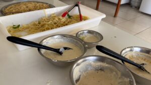 Os alunos inscritos no Goiás Social, através da parceria entre o Governo de Goiás e o COTEC, viveram nesta semana o momento mais esperado da capacitação: a etapa prática. Após quatro dias intensos de aulas e 20 dias de atividades contínuas, a turma orientada pela professora Rosana encerrou o curso de Massas e Molhos na cozinha da Igreja São Judas Tadeu, onde as atividades foram realizadas diariamente das 13h às 17h.