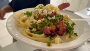 Durante o encerramento, os participantes apresentaram tudo o que aprenderam: produção de massas alimentícias, molhos como bolonhesa e bechamel, além de sobremesas como bolo de limão. O curso também incluiu noções de empratamento, empreendedorismo e desenvolveu um ambiente de convivência, onde novas amizades se formaram e a troca de experiências fortaleceu ainda mais o grupo.