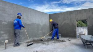O foco atual da obra está na reconstrução dos vestiários. A equipe trabalha intensamente para concluir esta área, realizando serviços essenciais como o reboco das paredes e a instalação da cobertura. Esta fase é fundamental para assegurar que as novas instalações ofereçam funcionalidade e modernidade aos atletas e às comissões técnicas.