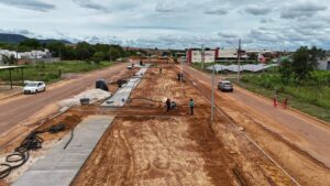 Além da duplicação, as equipes seguem com o reforço da drenagem e a urbanização da via, beneficiando diversos bairros de Barra do Garças
