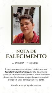 Seja o primeiro a comentar sobre "Nota de pesar: morre, aos 38 anos, Pamela Driely Silva Trindade"