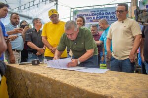 A cerimônia de assinatura da ordem de serviço para o início das obras aconteceu no Porto do Baé, com a presença do prefeito de Barra do Garças, equipe da gestão municipal, vereadores e imprensa local.