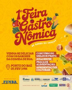 Barra do Garças já está em contagem regressiva para a I Feira Gastronômica de Barra do Garças, que acontece no dia 7 de fevereiro de 2026, no Porto do Baé, com início às 19h. O evento, aberto ao público, promete uma noite inesquecível, reunindo boa comida, cultura, música e muita alegria.