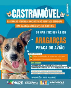 A cidade de Aragarças será contemplada com a vinda do Castramóvel, uma iniciativa que vai garantir 50 castrações gratuitas de cães machos e fêmeas para famílias cadastradas no CadÚnico. A ação é fruto de uma parceria envolvendo o vereador Elenilto Cristiano, a assessora parlamentar Cristina Peixoto, os deputados estaduais Bruno Peixoto e Veter Martins, além da gestão municipal.