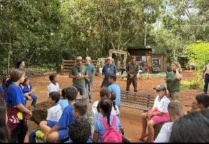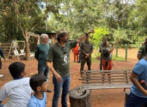 Os alunos do Centro Municipal de Educação Básica (CMEB) Castro Alves iniciaram o dia com uma recepção no Parque Estadual Serra Azul. Além do café da manhã, os participantes presenciaram uma conversa sobre sensibilização ambiental e fizeram uma trilha de contemplação pelas cachoeiras.