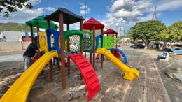 Prefeitura de Barra do Garças inicia montagem de playgrounds na praça da Matriz