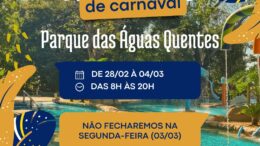 Confira os horários de funcionamento do Parque das Águas Quentes nos dias de pontos facultativos de Carnaval